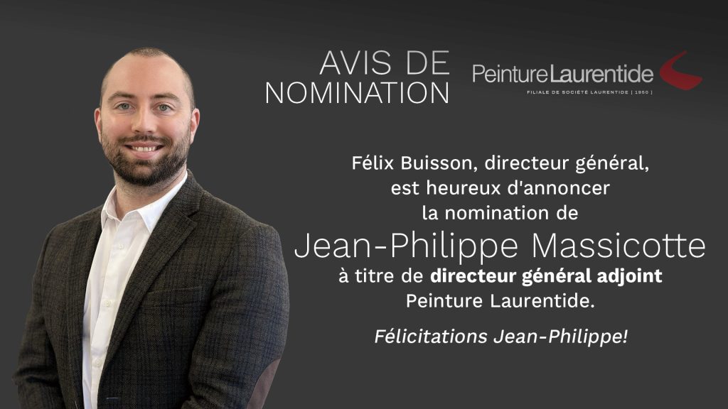Nomination chez Peinture Laurentide : Jean-Philippe Massicotte nommé directeur général adjoint