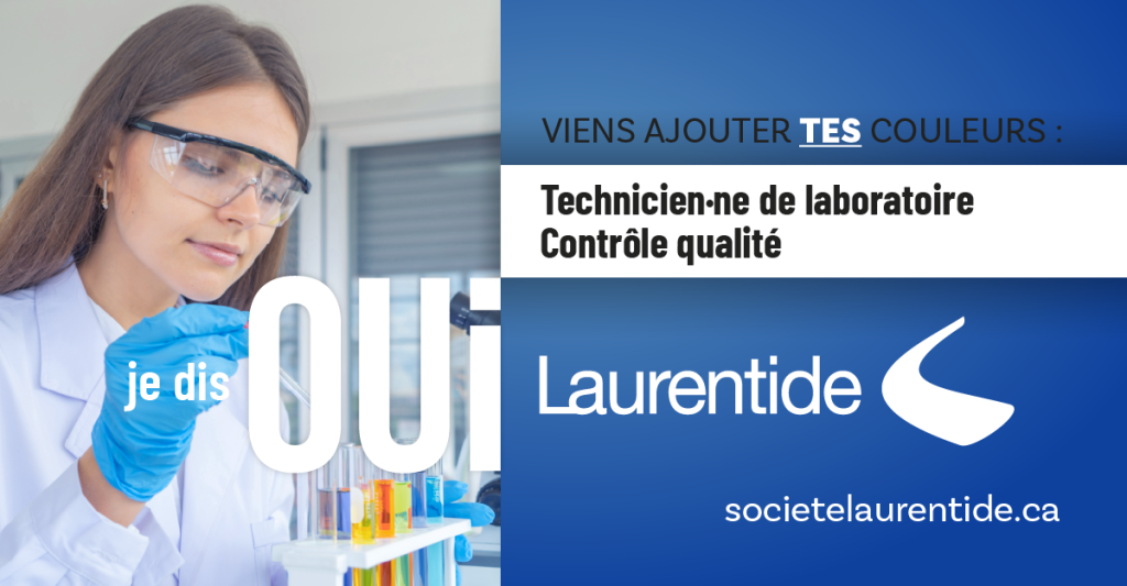 Notre équipe du laboratoire de contrôle qualité est à la recherche d’un·e technicien·ne de laboratoire. Tu es une personne minutieuse, tu penses équipe d’abord et tu te cherches un nouveau défi? On veut te rencontrer! Viens ajouter ta couleur à une équipe qui rayonne!