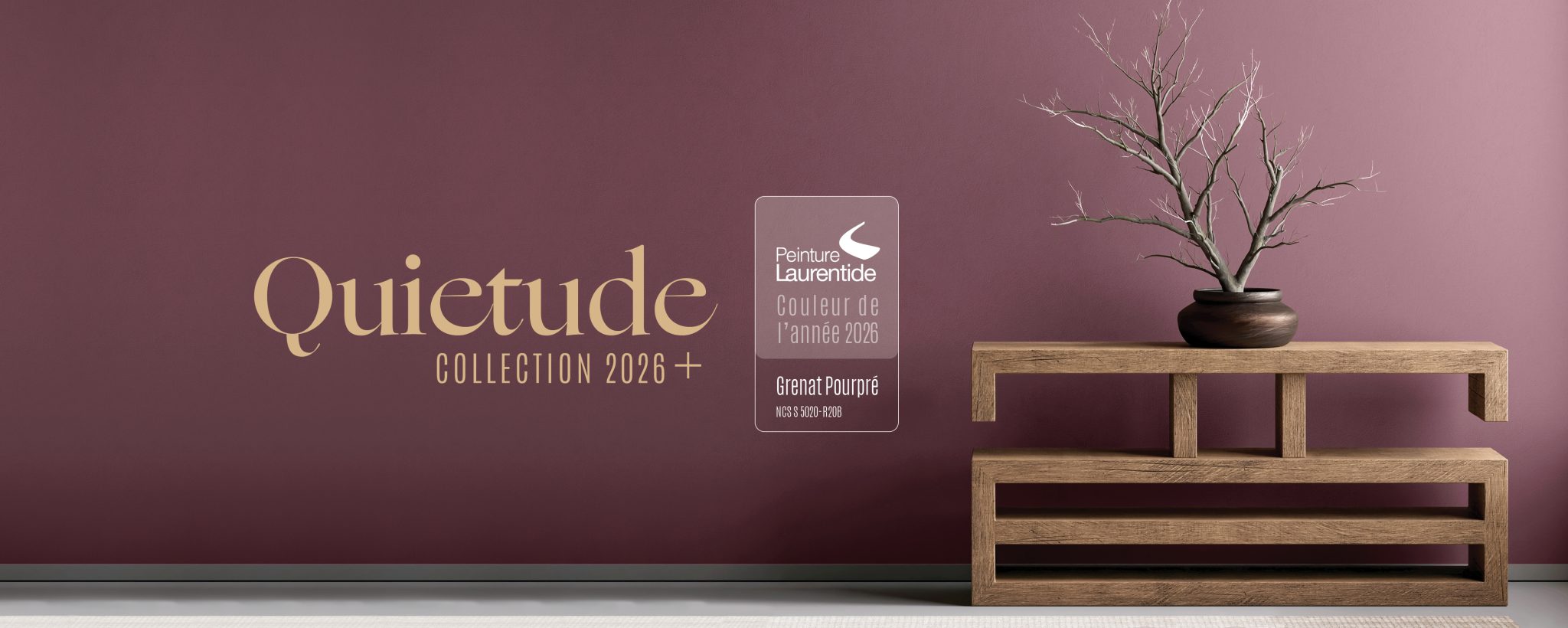 Un nouveau chapitre empreint de quiétude s’ouvre! Peinture Laurentide dévoile pour 2026 une teinte riche et enveloppante : Grenat pourpré. Couleur de caractère, elle incarne à la fois la passion, l’intuition et la puissance tranquille d’une transformation pleinement assumée. Nuancée de rouge profond, d’ombre et de chaleur, Grenat pourpré tisse un lien viscéral entre émotion, matière et élégance. Elle trouve sa place dans les intérieurs audacieux, les décors patrimoniaux revisités ou les espaces feutrés où l’on cherche à affirmer une présence forte et magnétique.